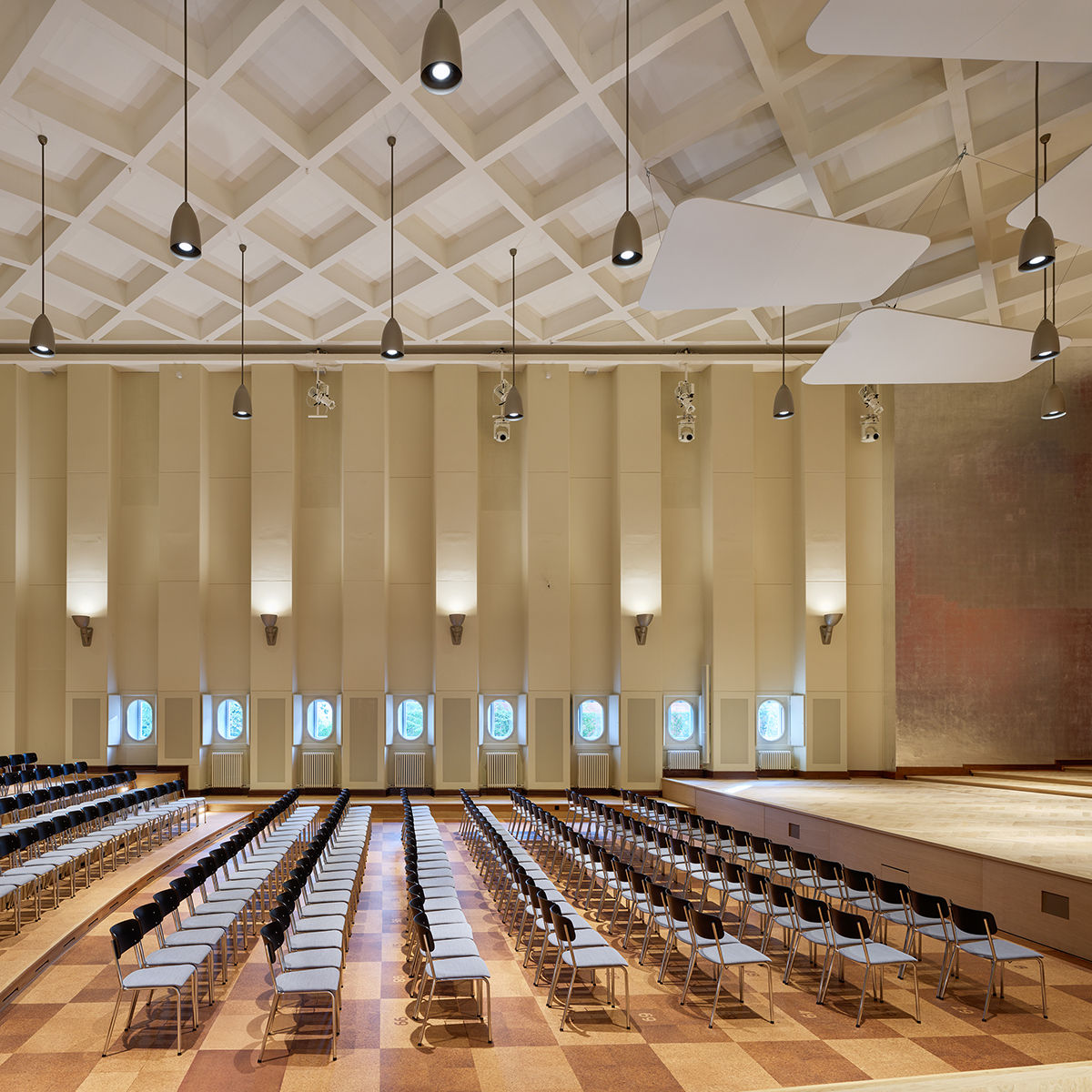 Da der Hauptgedanke dieses Projekts darin besteht, dem Gebäude seinen ursprünglichen Wert zurückzugeben, werden die Elemente und Materialien, aus denen es besteht, und insbesondere die Leuchten, so originalgetreu wie möglich restauriert.