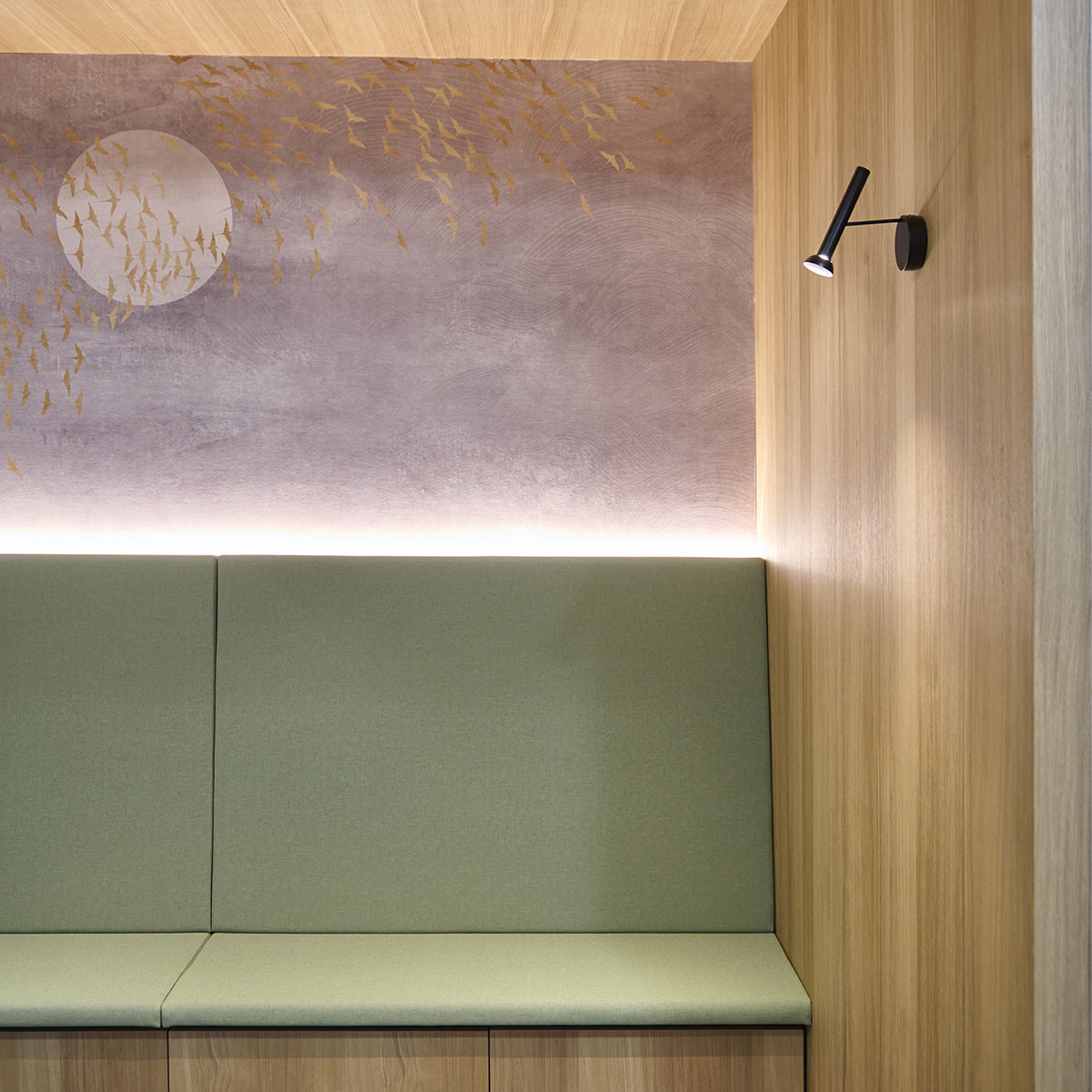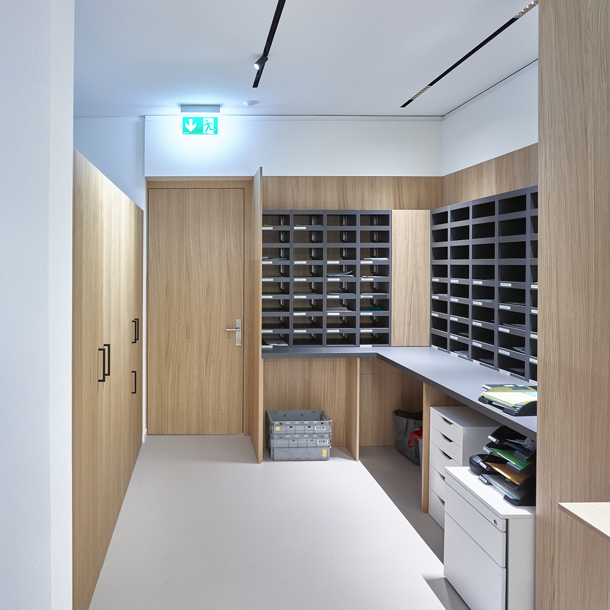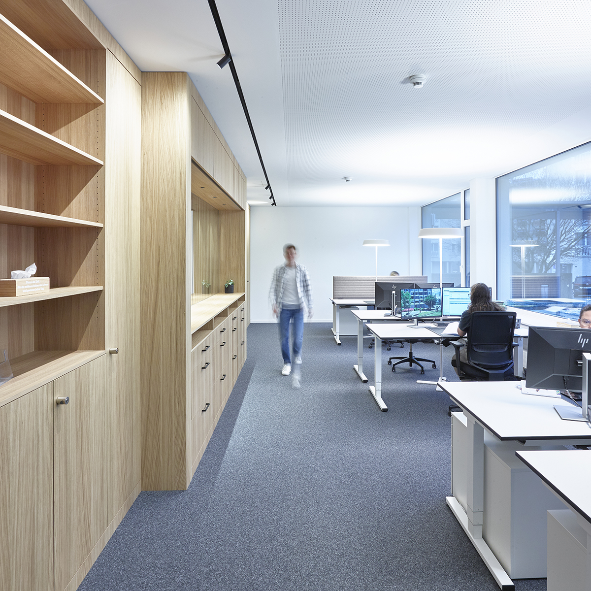 Die Eingangsbereich und Flure wurden mit einladendem angenehmem Licht gestaltet. Ansprechende Aufbauleuchten sowie indirekte Lichtlinien in den Empfangsmöbeln werten diese Bereiche atmosphärisch auf und bieten durch genügend Licht ausreichend Orientierung. Der zentrale Cafébereich wird durch eine besonders ausgeführte Holzdecke hervorgehoben. Durch runde Pendelleuchten entsteht eine warme und entspannende Atmosphäre, die die Besucher zum Verweilen einlädt. Die getrennt dimmbaren Anteile von direktem und indirektem Licht ermöglichen es individuell zu reagieren, dieser Bereich kann als Café aber auch zu Vorträgen u.a. genutzt werden. In den Verwaltungsbereichen kommen Magnetschienen zum Einsatz. Auf unterschiedliche Situationen können somit Strahler, Linsenprofile und diffuse Einsätze adäquat reagieren und für eine gute Ausleuchtung sorgen.